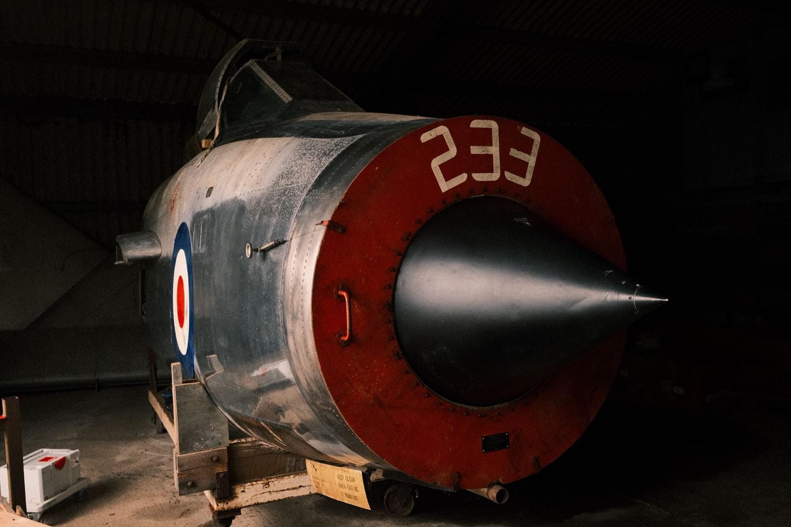 We have decided to keep the original red, white and blue roundel as it is - it keeps the character and patina. Other small details, like the original ejector-seat warning triangle, will also be kept with their original patina, while missing stencils will be replaced. A fully refurbished Lightning ejector seat will be installed, and the three or four missing instruments have already been sourced.