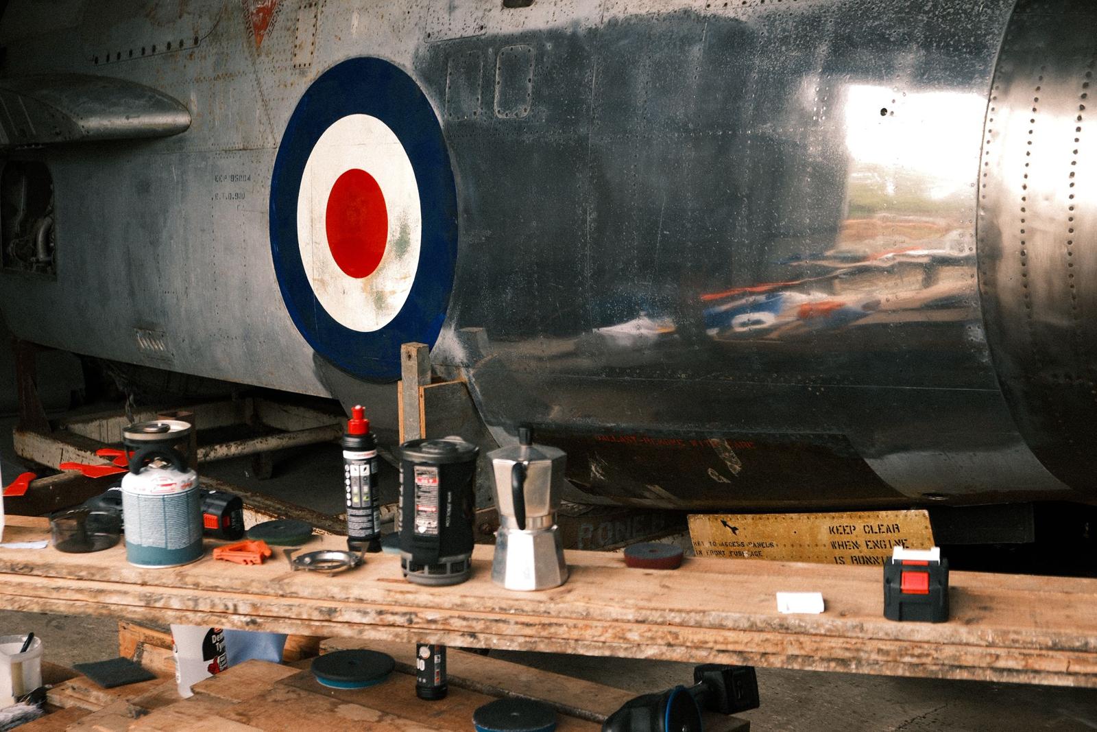 A Lightning might look like an aluminium tube, but each panel is made from aluminium with several layers and treatments. Strip too much, and you damage the surface. So, a delicate balance is needed: polish the airframe, but keep its “battle scars,” scratches and dents accumulated in service, and we want to preserve them as part of her story.